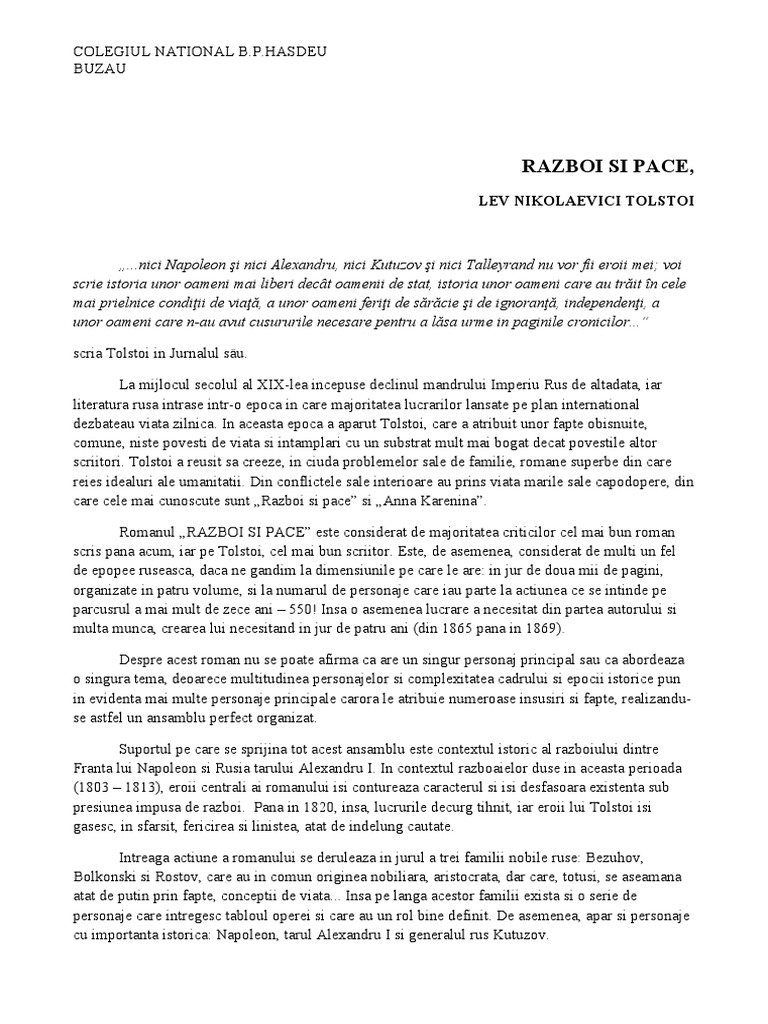 Razboi Si Pace Comentariu