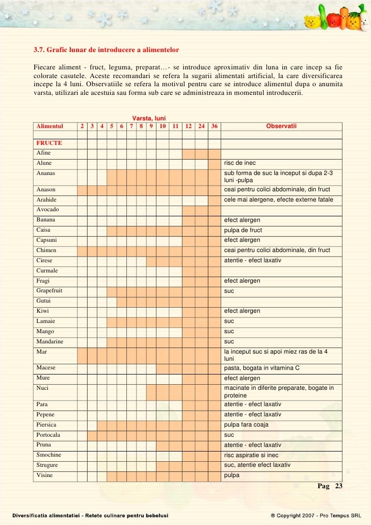 Schema De Diversificare A Alimentaţiei Bebelusului