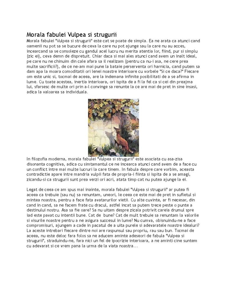 Care Este Morala Fabulei Vulpea Si Strugurii De Jean De La